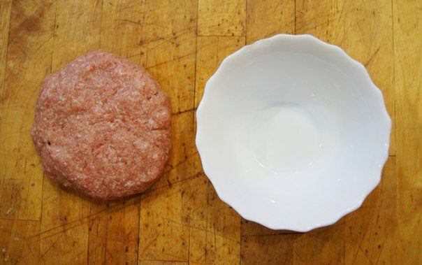 Мокрыми руками сформировал мясную лепешку.