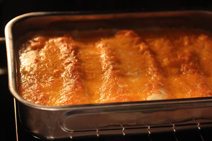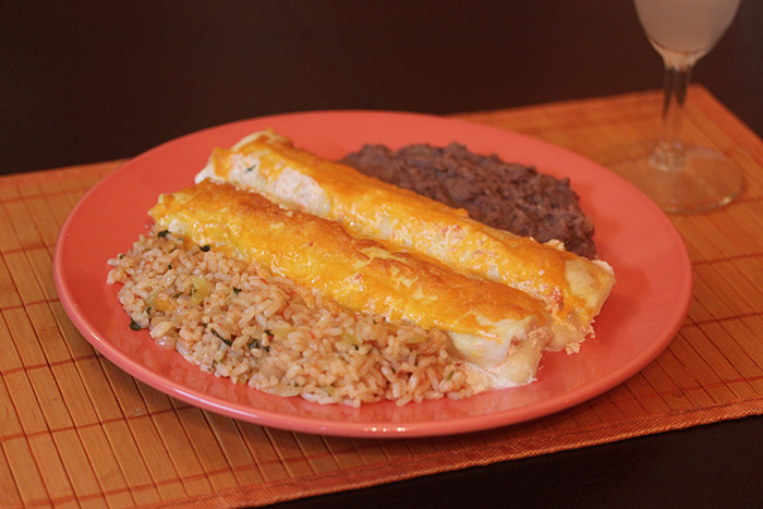 Энчиладас, если кто не в курсе, — это лепешки-тортильи с начинкой, запеченные в соусе.