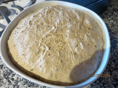 За полчаса до окончания второго подъема теста начинаем разогревать духовку (до 230 C/ 450 F) со стоящей в ней чугунной жаровней с крышкой (можно также печь такой хлеб в керамической или огнеупорной стеклянной посуде с крышкой.)