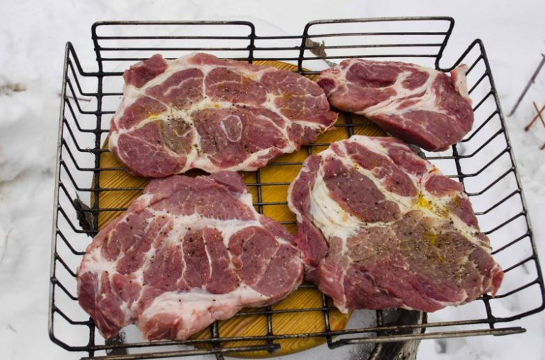 Снег и мясо… а для полноты картины не хватает бутылочки водки, ну… что бы в процессе не скучать с друзьями