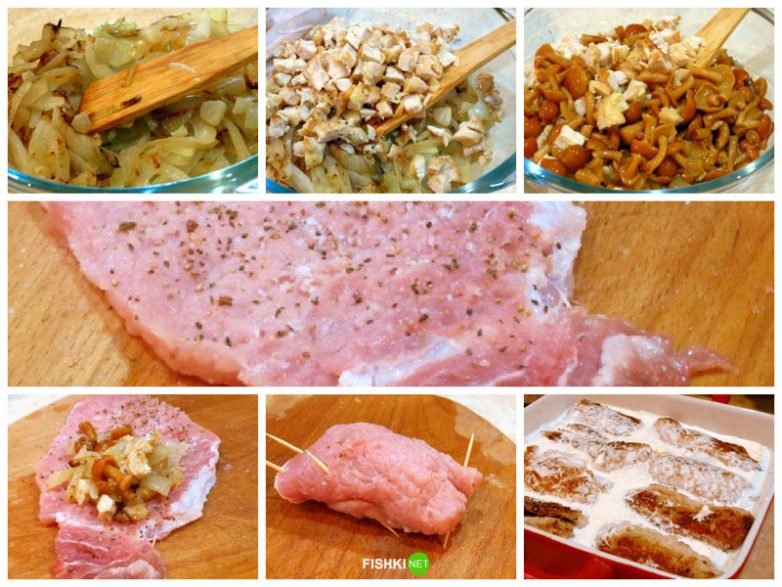4. Свинину порезать, каждый кусочек отбить, посолить, поперчить.