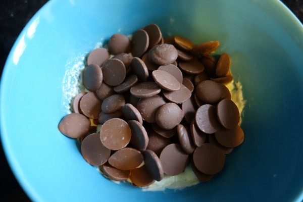 Разогреваем сливки в микроволновке при мощности 1000 ватт, добавляем шоколад.