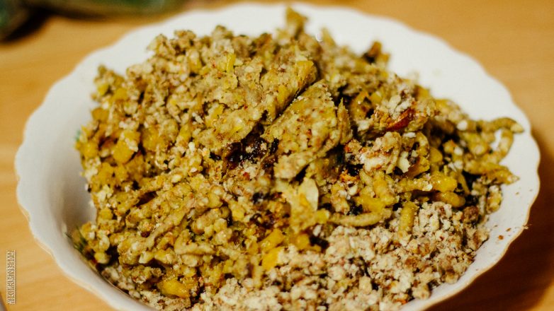 Орех можно поджарить, можно очистить, я этого делать не стал.
