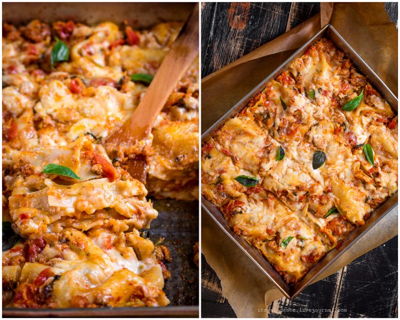 Рецептов лазаньи — море и еще немножко. Почти как наш борщ. Но самый обычный и классический метод — так готовят в Болонье и Неаполе — с рагу болоньез, соусом бальзамелла (он же бешамель), пармезаном, ну и с широкими листами пасты. Дальше уже можно экспериментировать — добавлять моцареллу, рикотту, убирать мясо и тд.