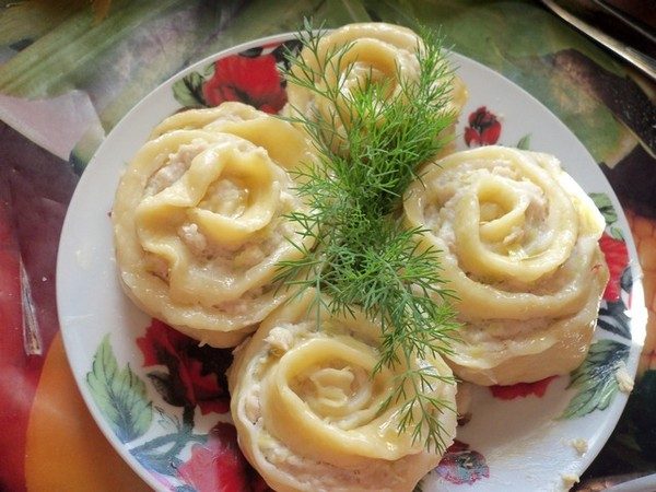 Мясной рулет на пару узбеки называют ханум или хунон. Есть у него еще одно имя — гул хунон-хунан «роза», ведь в готовом виде каждый рулет напоминает раскрывшийся бутон розы, или, как ее называют в Узбекистане, — атиргуль.