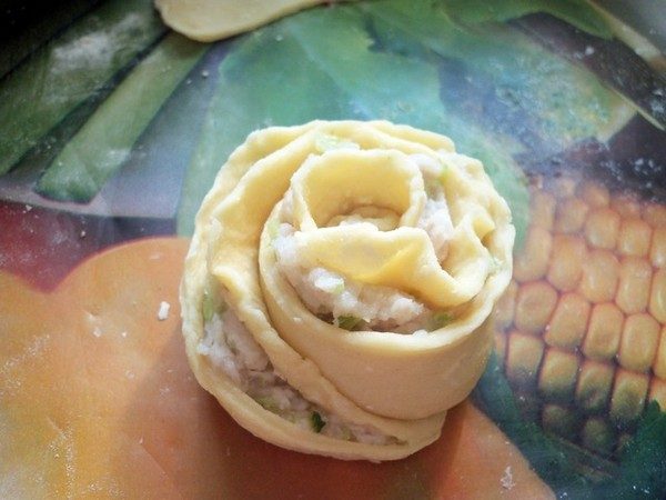 Готовые «розы» обмакнуть нижней стороной в блюдце с растительным маслом (что бы не прилипли к мантоварке)