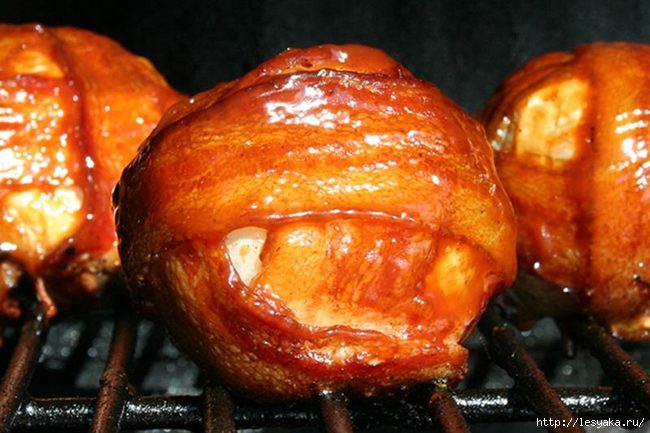 Это блюдо, идеально подойдет для посиделок с друзьями на природе, и оно покорит любое сердце! Луково-мясные шарики, наполненные грибами, луком, петрушкой и фаршем идеально сочетаются с соусом барбекю.