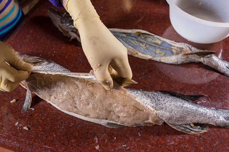 Удалите из головы жабры, как следует промойте все внутри.