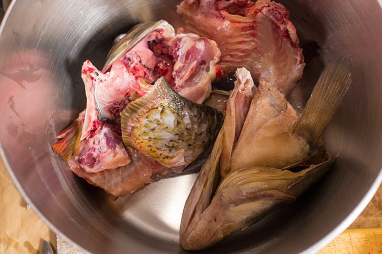 Хребты, ребра, головы отправляйте варить, залив небольшим количеством воды.