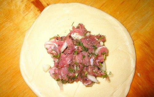 Начинка: говядина (в идеале должна быть баранина). Порубить мелко или прокрутить в мясорубке с крупной решеткой (в 4 отверстия).