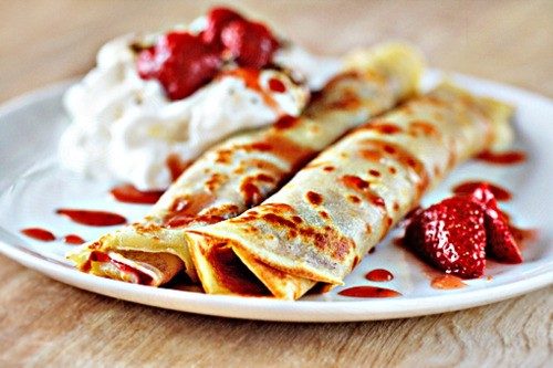 Понадобится: для омлетов – 10 яиц, 50мл сливок или ½ стакана молока, сливовое/смородиновое варенье, соус – 2 стакана сливок, по 2 ст.л. муки и сливочного масла, 1 ст.л. сахара.