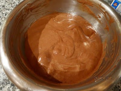 Треть взбитых белков интенсивно вмешиваем в шоколадную смесь.