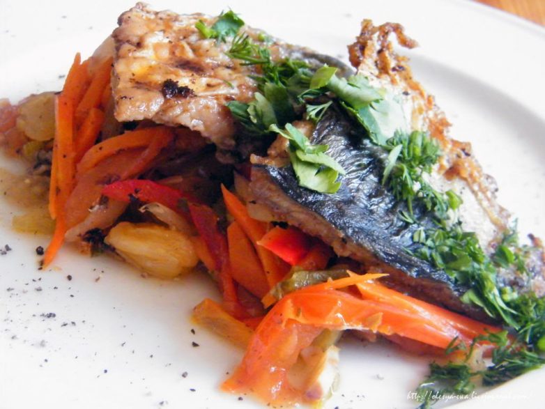 Скумбрия с овощами.