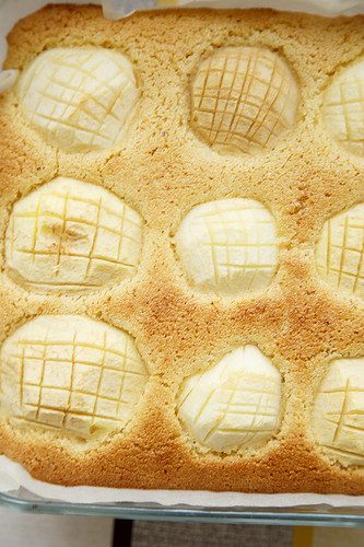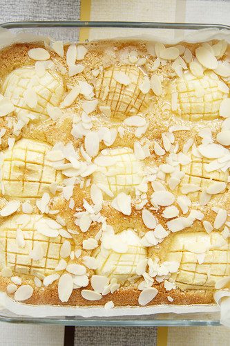 Вынуть пирог из духовки. Полить пропиткой (перед этим зубочисткой можно проколоть тесто в нескольких местах, чтобы сироп быстрее пропитывал тесто).