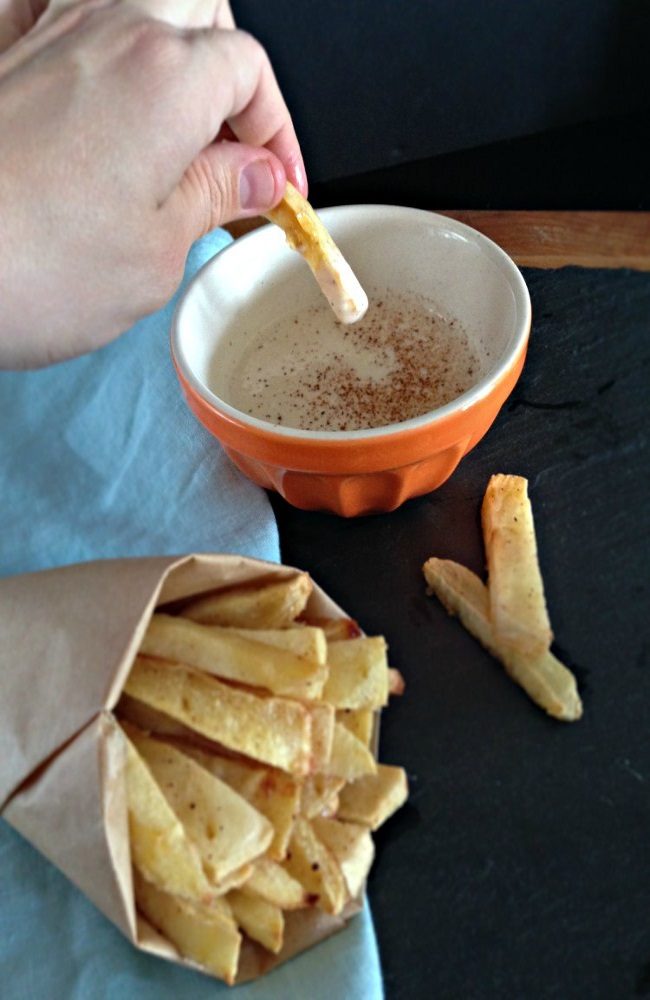 Смажь кусочки яблок растопленным сливочным маслом.Посыпь яблоки сахаром и корицей.Выпекай в течение 15 минут, пока края яблок не станут коричневатыми.Пока яблоки выпекаются, взбей кленовый сироп с размягченным сливочным сыром.Смешай полученную смесь со сметаной и посыпь корицей. Соус готов! Доставай яблоки из духовки и смакуй!