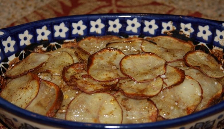 Нарезанный тонкими ломтиками картофель замечательно запекается в духовке, раскрывая новые вкусовые оттенки благодаря ароматной молочной заливке…
