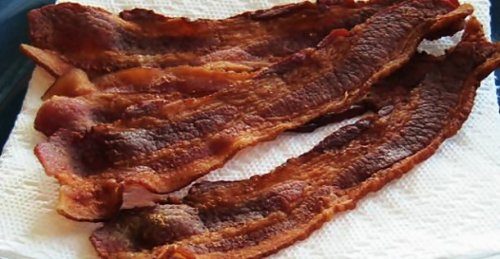 Приготовление бекона в микроволновке быстрее и лучше для здоровья. Поместите бумажные полотенца на тарелку и положите полоски бекона на полотенца. Также накройте их бумажными полотенцами, чтобы избежать брызг жира. Установите высокую температуру и готовьте в течение приблизительно 3 — 5 минут, и вы получите вкусные ломтики бекона без жира.