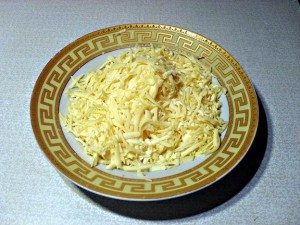 Яйца отвариваем вкрутую. Охлаждаем, чистим и натираем на терке.