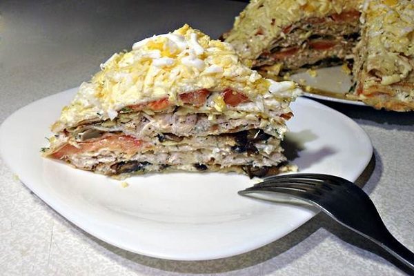 Приготовьте такой сытный и оригинальный тортик к приходу гостей или семейному ужину, и все наверняка останутся довольны.