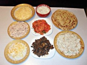 Собирается он из тонких блинчиков с начинкой на ваш вкус: соленой либо сладкой. Рецепты начинки могут быть самые разнообразные. Перепробовав несколько вариантов, хочу предложить вам самый вкусный — блинный торт с курицей, грибами и сыром.