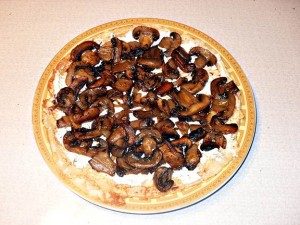 Сверху выкладываем первый слой из жареных шампиньонов с луком.