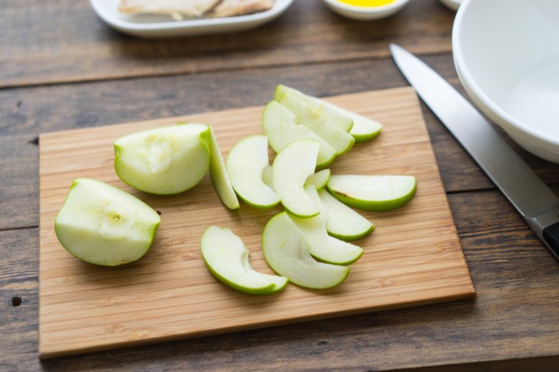 Возьмите яблоко покислее, нарежьте на тонкие слайсы. Чистить от кожуры не обязательно.