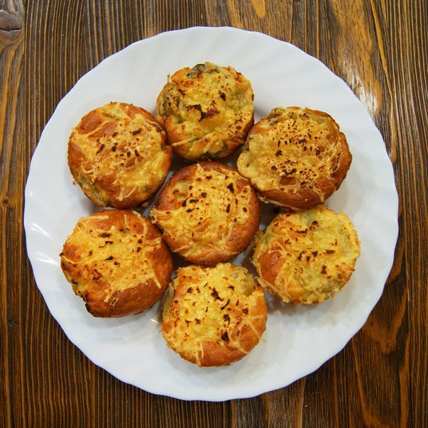 Эти вскусные закусочные маффины, не простые, а с колбасой и творгом грибами.
