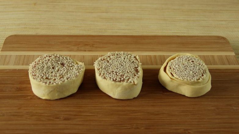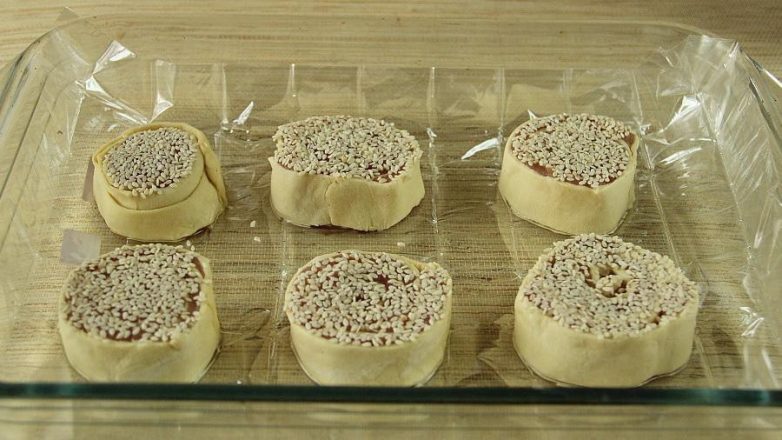 Одной стороной окунаем в них рулетики. Если кунжут липнет плохо, то нужную сторону рулетика можно немного смочить водой