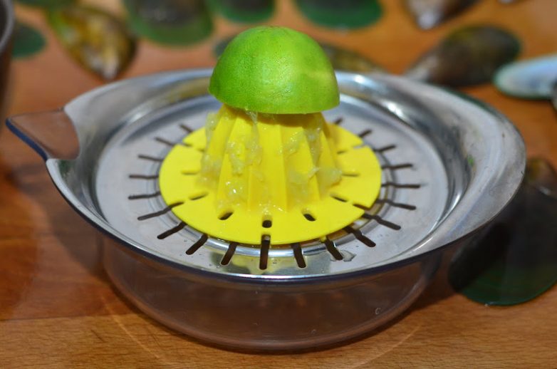 17. Пока мидии в духовке, выдавливаем сок лайма. На гарнир варим белый рис.