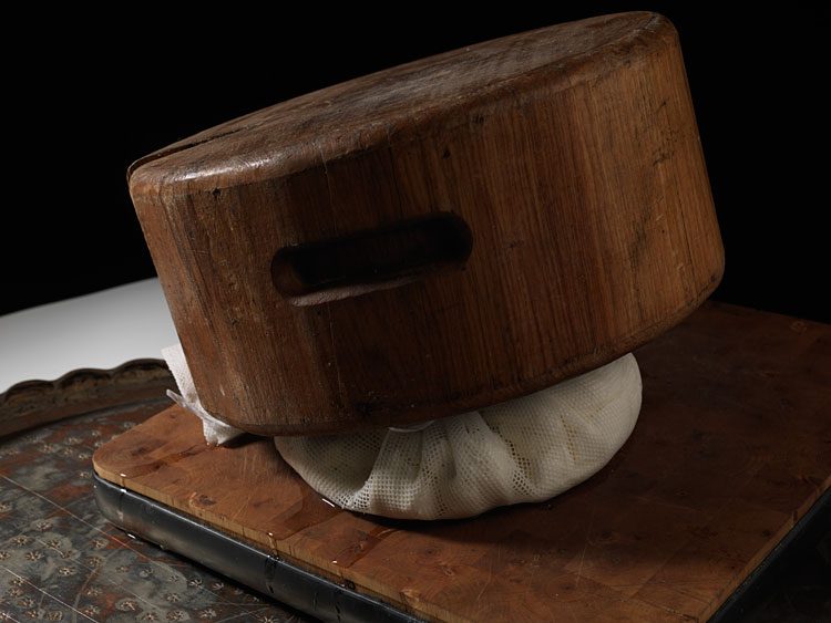 Тогда сыр следует разрезать на небольшие кусочки и снова подвесить. Эту операцию следует повторить два-три раза, каждый цикл займет не больше десяти-пятнадцати минут. С каждым разом сыр будет становиться все плотнее.