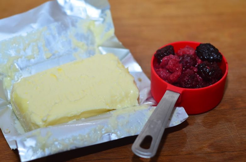 Составное масло с черникой и малиной.