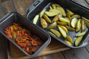 Ставим обе формы в духовку, разогретую до 205 градусов. Я выпекал 20 минут. Если будете делать на открытом огне — можно просто завернуть то и то в фольгу.