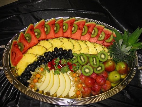 Есть три способа подачи фруктового ассорти: выложить фрукты в вазу, выложить на плоское блюдо, соорудить фруктовую корзину или букет.