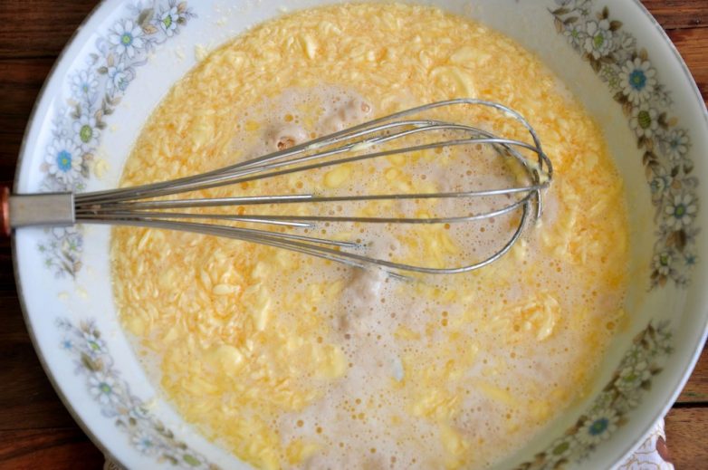 В масляно — яичную смесь добавляем вспененные дрожжи.