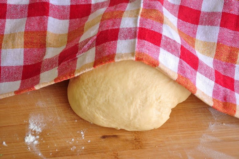 Смазываем миску растительным маслом и кладем туда тесто, накрываем полотенцем и ставим в теплое место для подъема. Я обычно использую духовку разогретую до 50С, в течение всего времени подъёма теста, уменьшаю и возвращаю температуру, в данном случае тесто у меня подходит около 45 минут. Место для подъёма обязательно должно быть теплое, желательно без сквозняков.