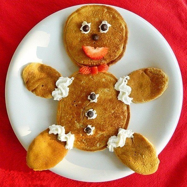 Вот такой забавный человечек может получиться, если украсить оладьи.