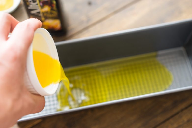 В небольшую формочку налейте оливковое (30 г) и растопленное сливочное (30 г) масло.