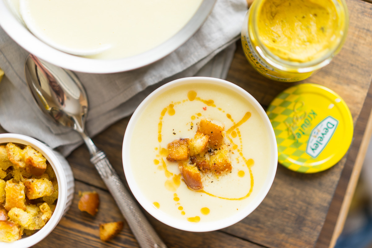 Супы-пюре, как отдельный вид супов, я очень люблю. В их однородности и кремовости есть какой-то определённый шарм, который порой очень радует. Плюс работает фантазия, когда в чашке однородная, одноцветная масса, начинаешь придумывать, как же такой суп украсить. В ход идут обжаренные грибочки, сухарики, кусочки зелени, капли масла и всё, что есть под рукой. Обязательно щедро посыпать перцем и приправить кусочком масла или тёртым сыром.