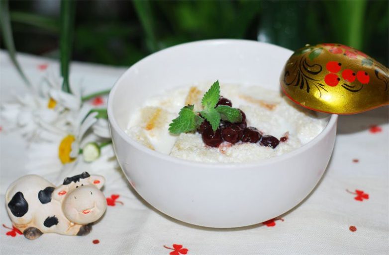 Берём белый хлеб, нарезаем, отрезаем корочки. Молоко можно нагреть, можно брать, наоборот, холодное, ну а в идеале использовать парное! Кладём хлеб на противень и ставим в разогретую духовку (на максимальную температуру на 5-7 минут). После чего, нарезаем хлеб на кубики, заливаем молоком и добавляем мед или варенье.