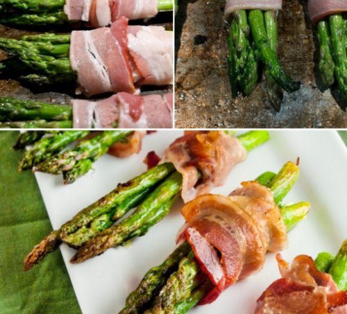 Спаржу любят не многие, но если её завернуть в бекон, она волшебным образом становится аппетитной для всех! Эта закуска действительно смотрится очень аппетитно и её чрезвычайно легко готовить.