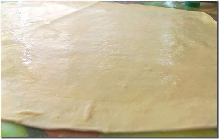 Затем улитку раскатываем в тонкий круг и посыпаем начинкой.