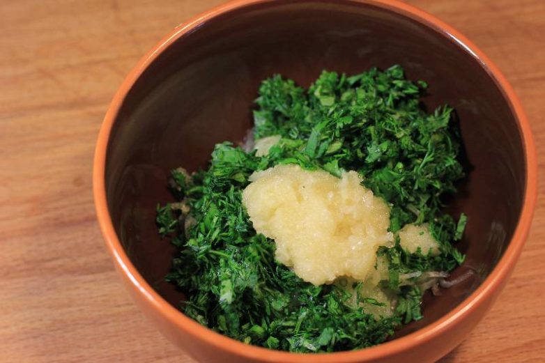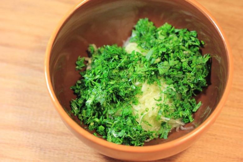 В манты я кладу немного кориандра, но в данном случае настоятельно рекомендую использовать свежую кинзу и петрушку, что прекрасно видно на фотографии:).