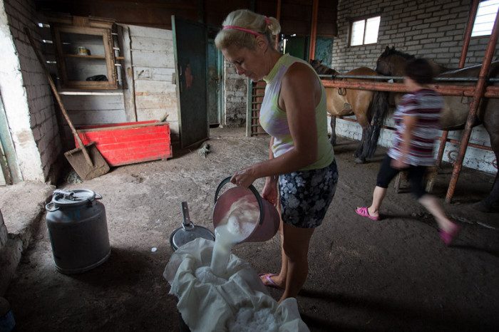 Надо сказать, что кобылье молоко собирается гораздо сложнее, чем коровье или козье. Кобылу доят 4-6 раз в день, и сделать это надо очень быстро, у доярки не больше полминуты на то, чтобы собрать молоко. Одна кобыла в день дает около 5 литров молока.