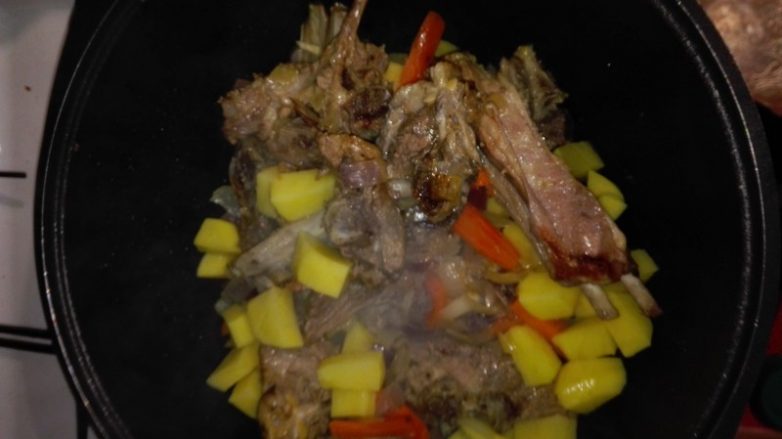 Все включая картоыель добавляю по мере чистки-нарезки.