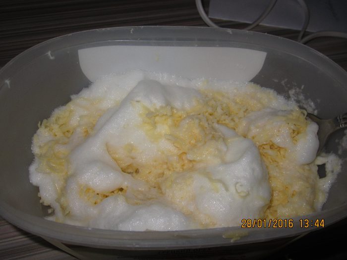 Чайной ложкой набирать сырно-белковую смесь и обваливать шарики в муке.