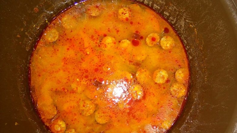 И 100 грамм помидорного сока из банки с помидорами, чтобы не пропал.Можно бульона налить, если есть бульон, или кубик бросить.
