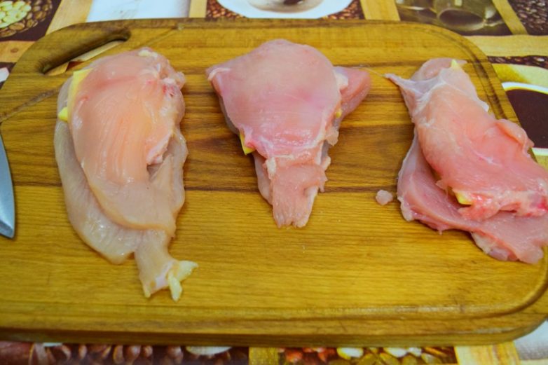 Нарезаем грудку пластами, теми размерами какими удобно(ну может кто помельче котлетку хочет)