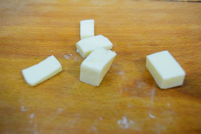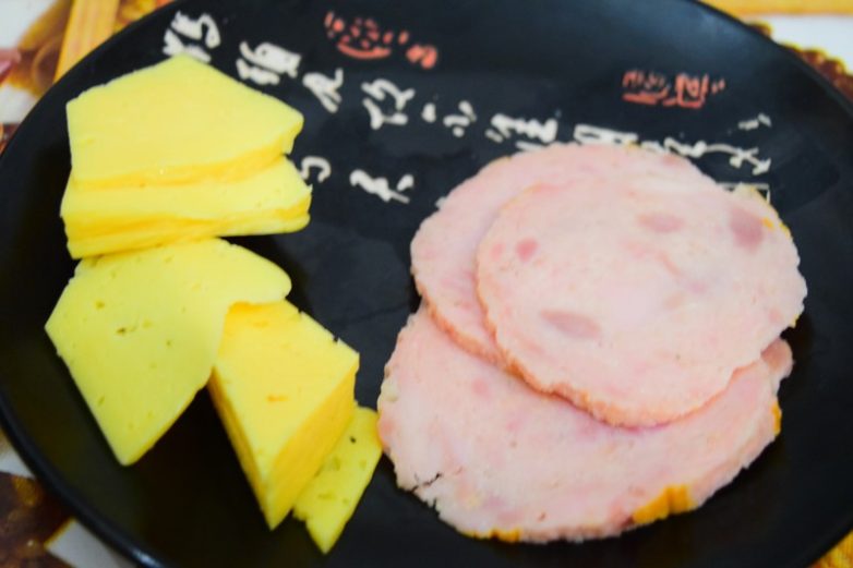 Упаковываем внутрь сыр с ветчиной (если полностью не обхватывает сыр с ветчиной, ничего страшного)