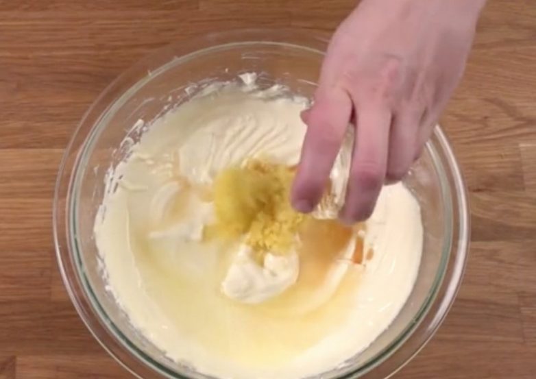 Добавьте 2 столовые ложки лимонного сока, ванильный экстракт и лимонную цедру. Взбейте все ингредиенты.