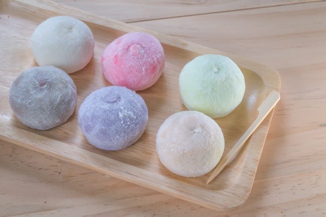 Замешиваем тесто. В муку с сахаром добавляем 5 ст.л. воды.Размешиваем. Получится довольно однородная тянущаяся масса. Если хотите добавить краситель — самое время! Ставим в микроволновку ровно на две минуты, накрыв смоченным влажным бумажным полотенцем. Вынимаем, добавляем еще одну ложку воды, размешиваем и ставим в микроволновку еще на одну минуту, также накрыв полотенцем.Даем тесту остыть, постоянно помешивая. Тесто прекрасно лепится в теплом состоянии, когда остывает — сильно теряет эластичность, поэтому приступаем к лепке сразу. Досточку накрываем кулинарной пленкой, посыпаем мукой. Руки также посыпаем мукой. Достаем понемногу тесто, притрушиваем мукой, и делаем из него лепешки.Размер лепешки зависит от размера начинки. В идеале — чем тоньше слой теста, тем лучше. Лепешки получаем либо растягивая тесто, либо постукивая по нему пальцами.Выкладываем в центр лепешек мороженое. Защипываем края.Выкладываем на блюдо, слегка посыпанное мукой и сверху притрушиваем ею же. Десерт готов! (Десерт довольно долго хранится в морозилке, но повторно лучше не замораживать. Если ожидаете прихода гостей — предварительно выньте его из морозильной камеры за 20-30 минут, чтобы начинка успела стать мягкой.)